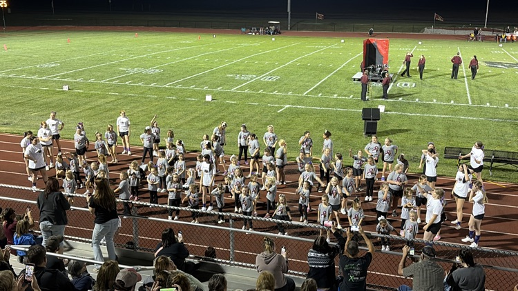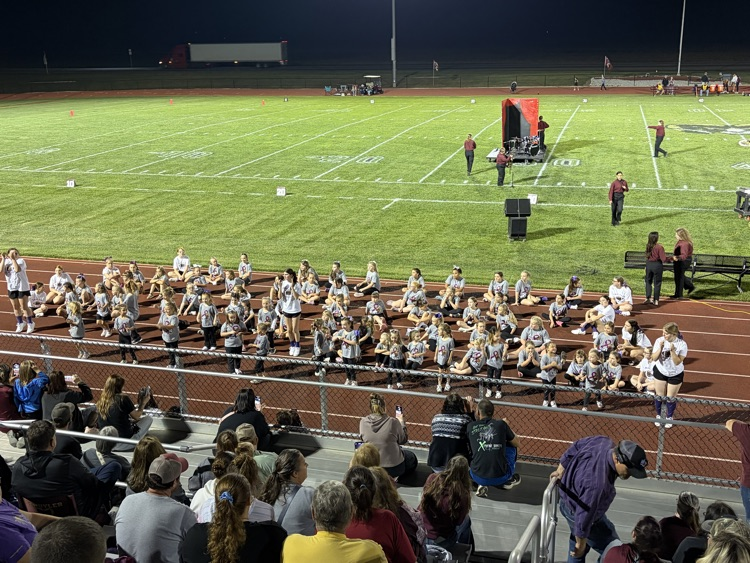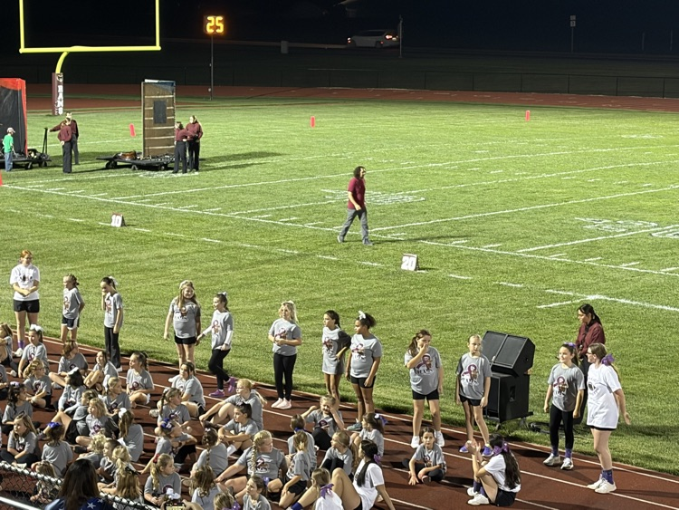 Coach Amanda and her cheer squad led a large group of Mini Rams through a nice performance at halftime last night. Thank you to everyone who came out to support these cheerleaders during the Purple Out game!