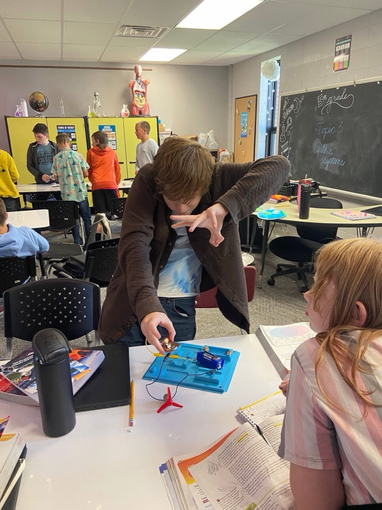 Sixth graders are learning about energy in science. They've conducted several experiments to observe potential, kinetic, thermal, and electrical energy in action.