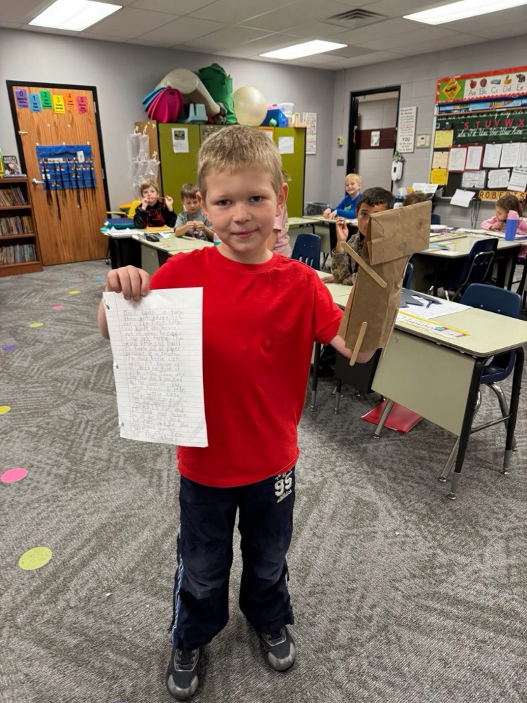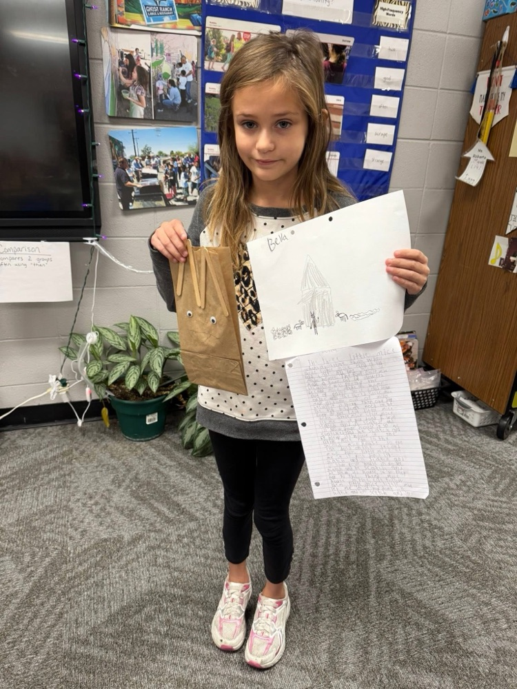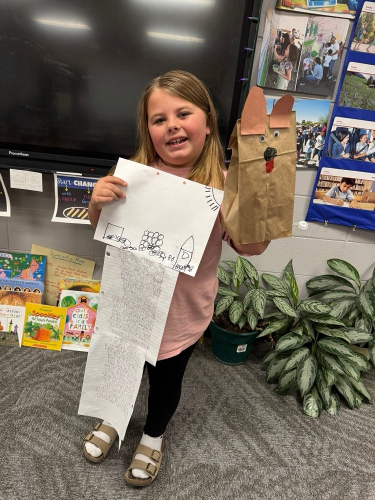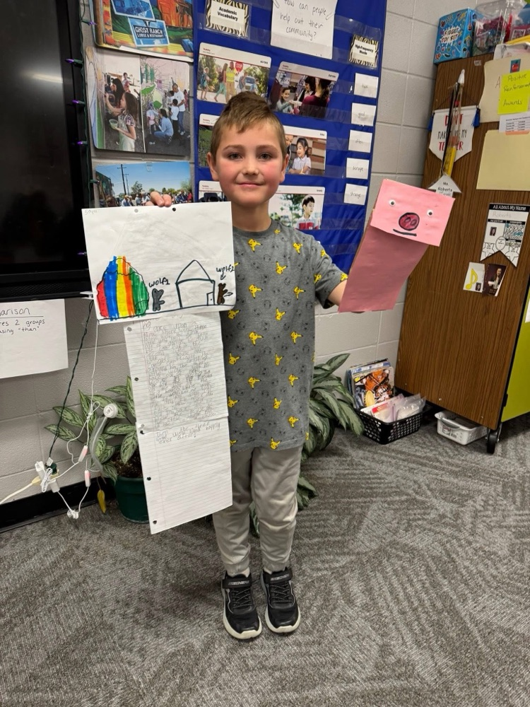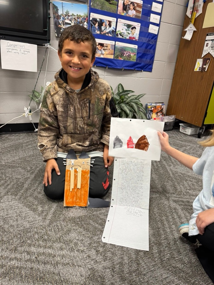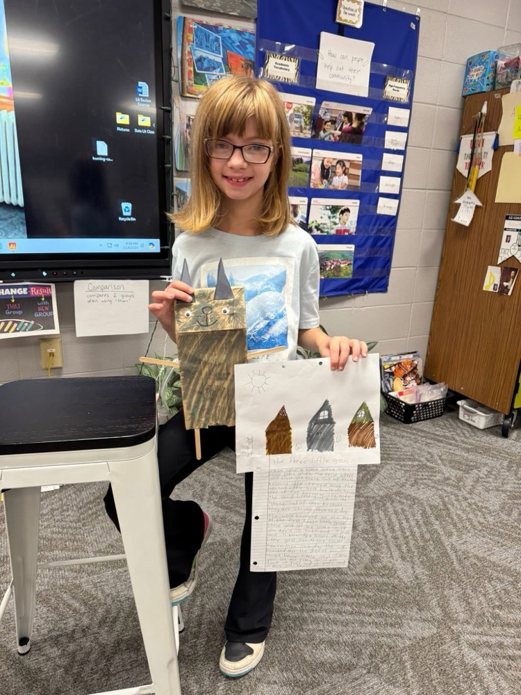 Second grade wrapped up their folktale writing unit. They shared their stories and the puppets they made to go along with them.