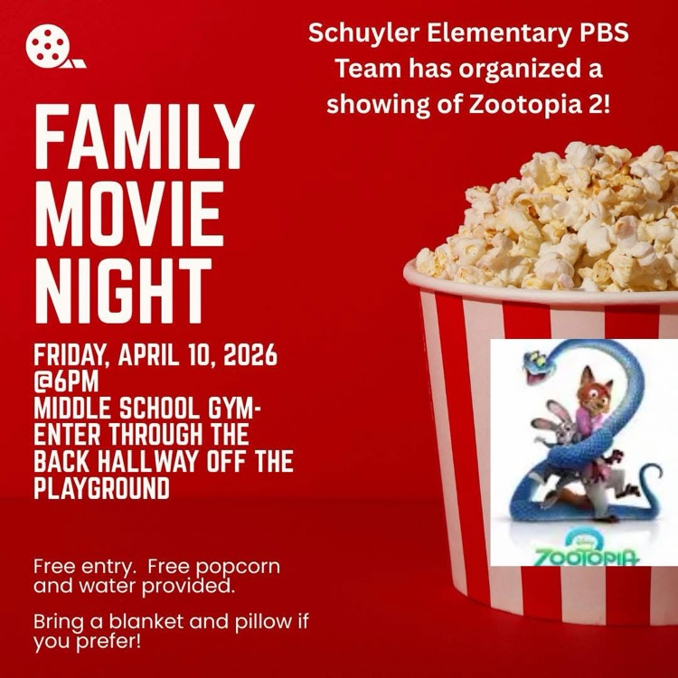 The PBS team is hosting a free movie night this Friday, April 10th! Join us at 6pm in the middle school gym!