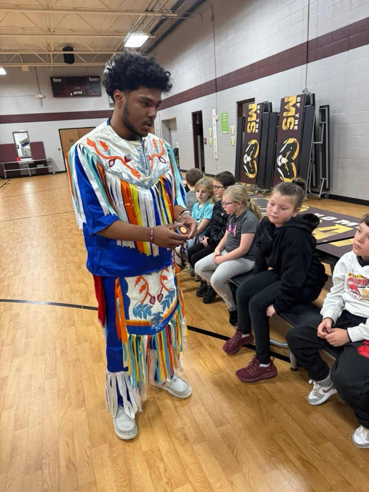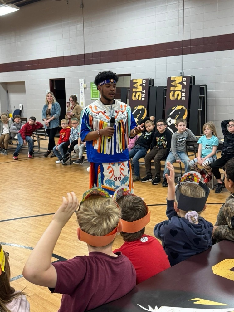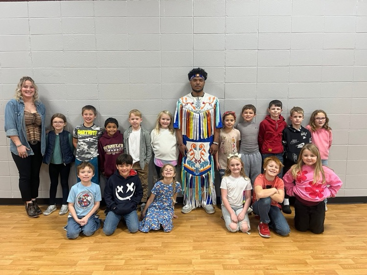 2nd and 4th grade had a very special guest yesterday! Donovan is a grass powwow dancer and demonstrated for them in his traditional regalia. He then answered the students' questions. It was the perfect way to end their Native American units!