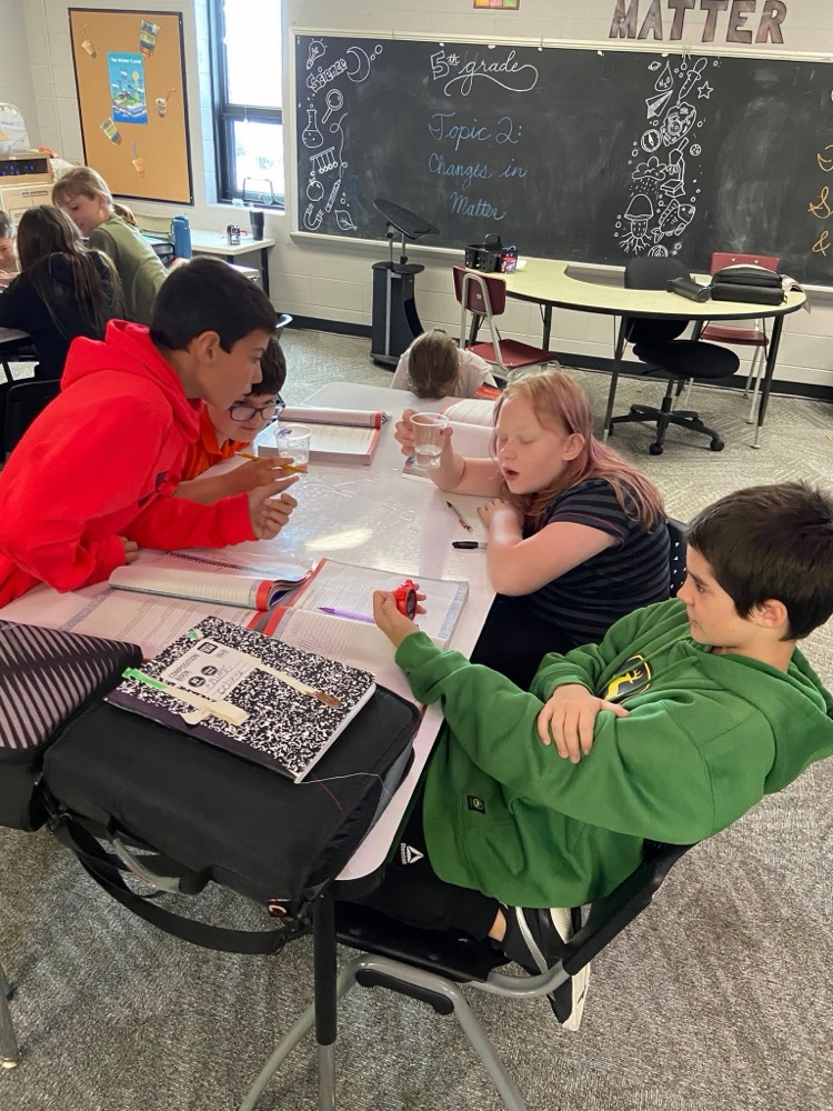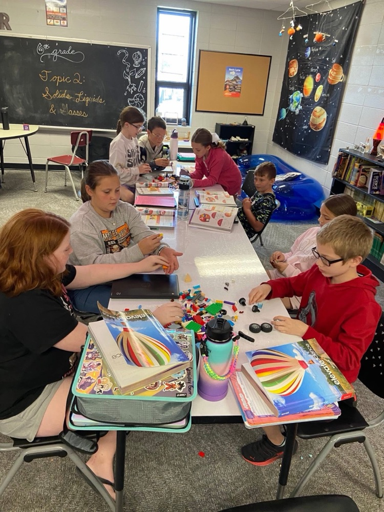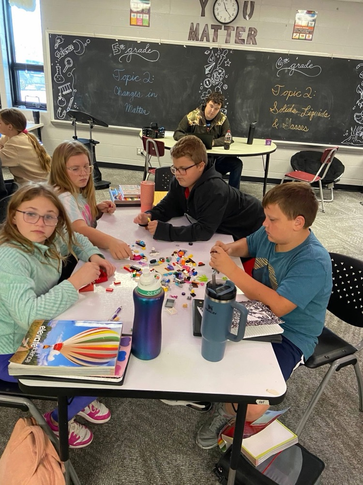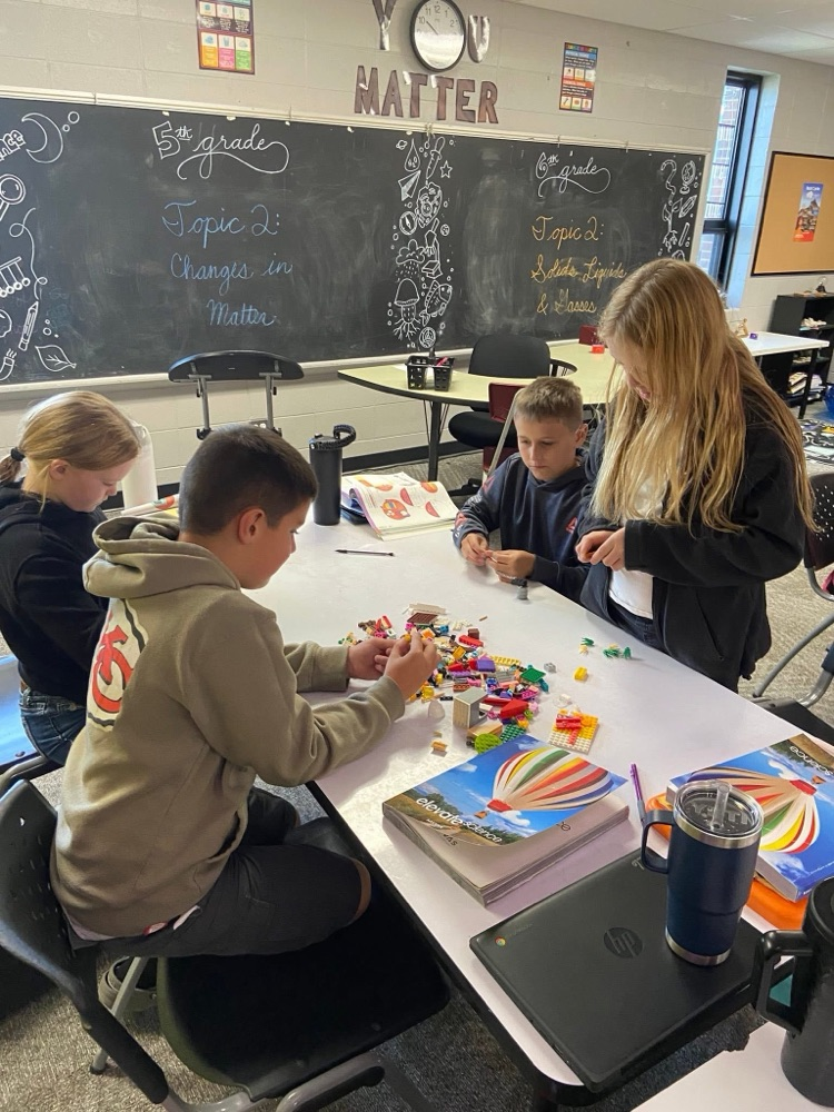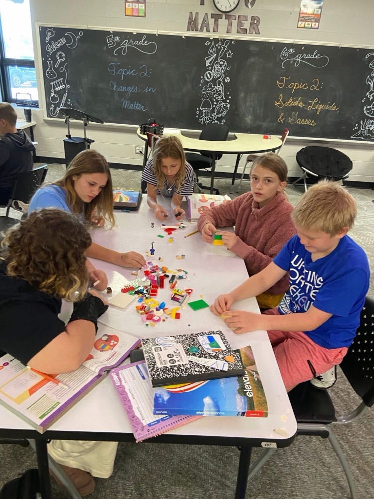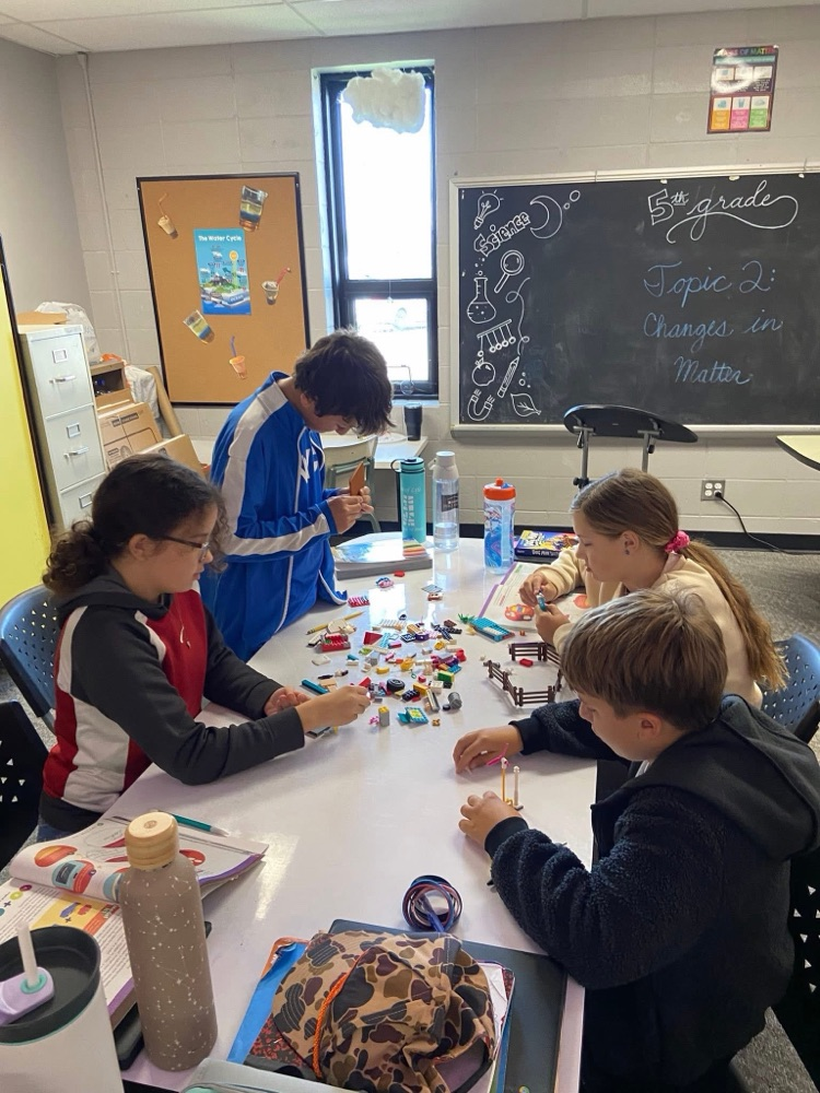In science today, fifth graders learned about physical and chemical changes using legos.