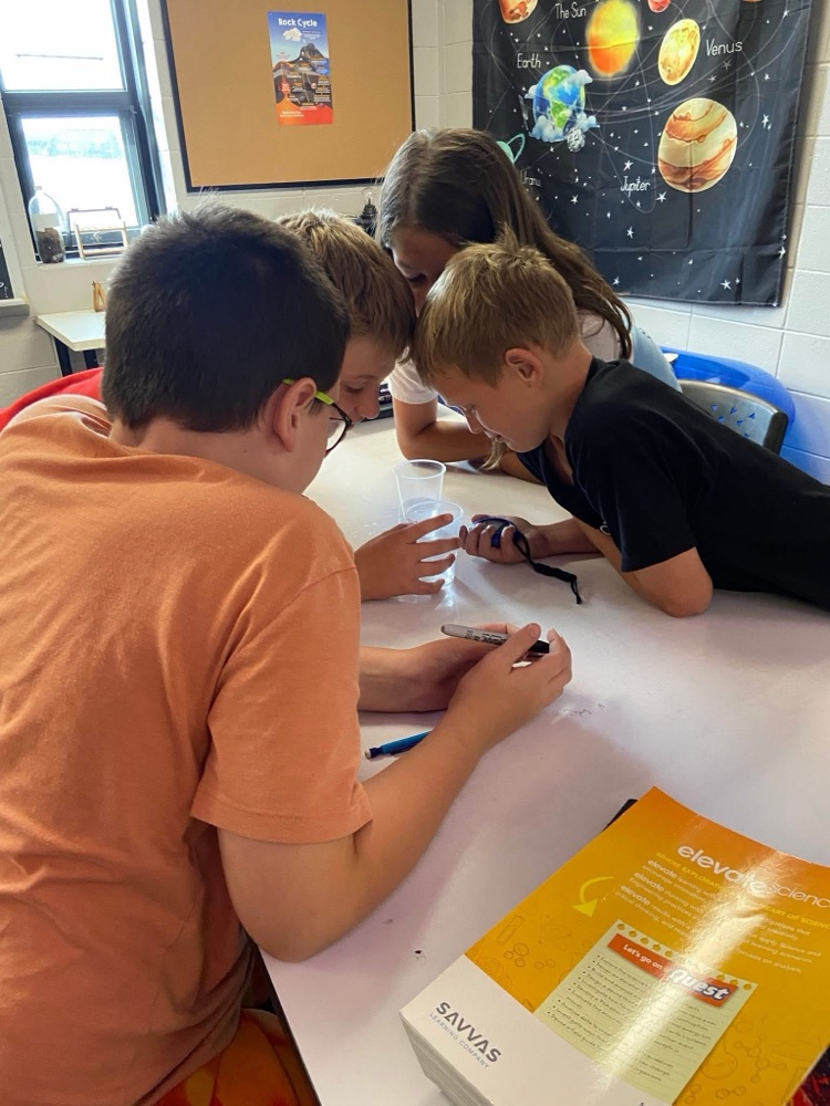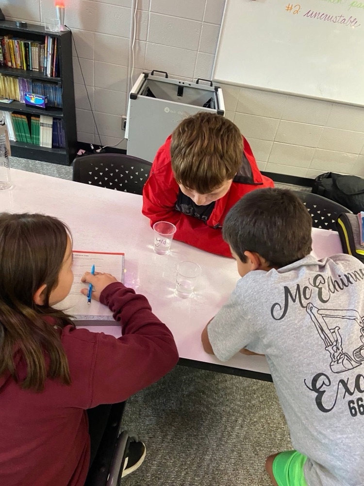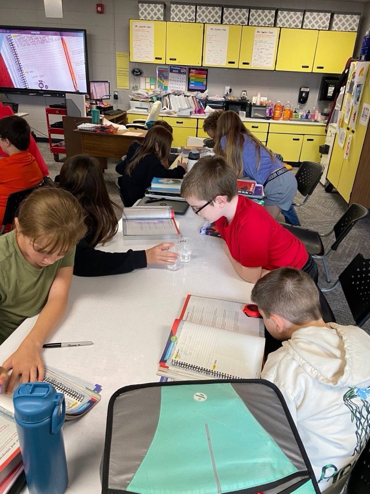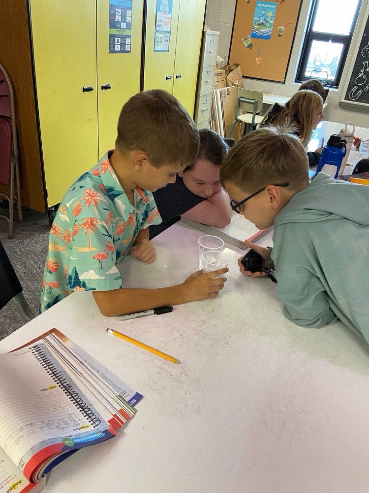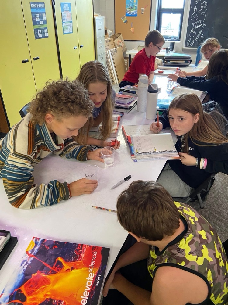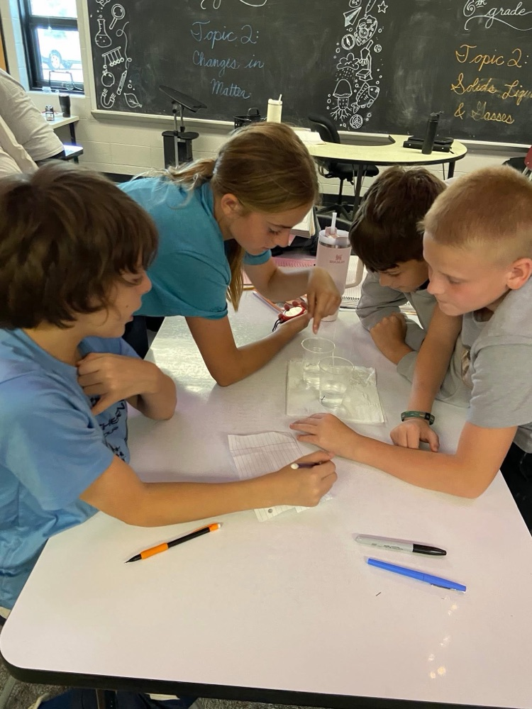 Sixth grade science students learned about thermal energy by melting ice cubes in water today. 🧊