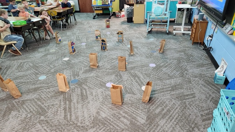 First graders recently finished their lessons on community helpers. They designed their own class town as they talked about the aspects that make a successful community.