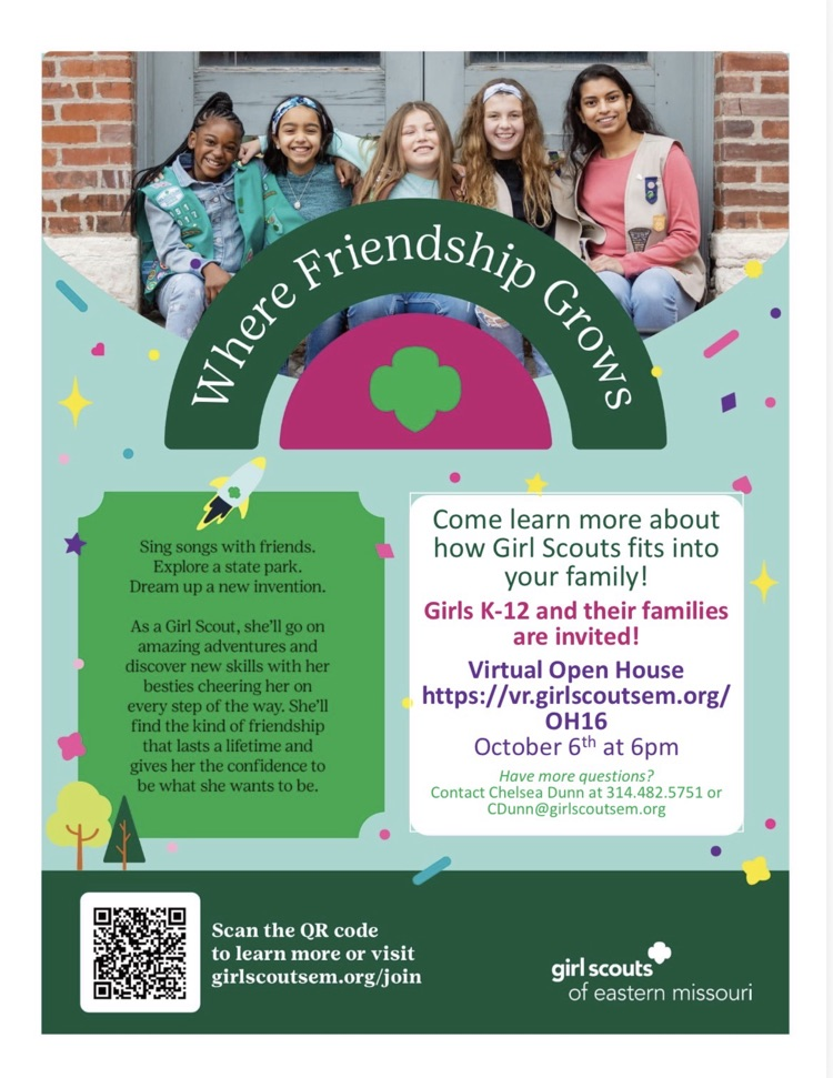 Girl Scouts virtual open house event on October 6th at 6:00 PM for K-12 girls