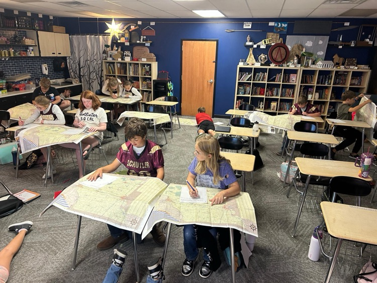 5th graders in Social Studies have been learning the skills to read and use a mqp. They put it altogether to ask and answer questions about a map of Missouri.